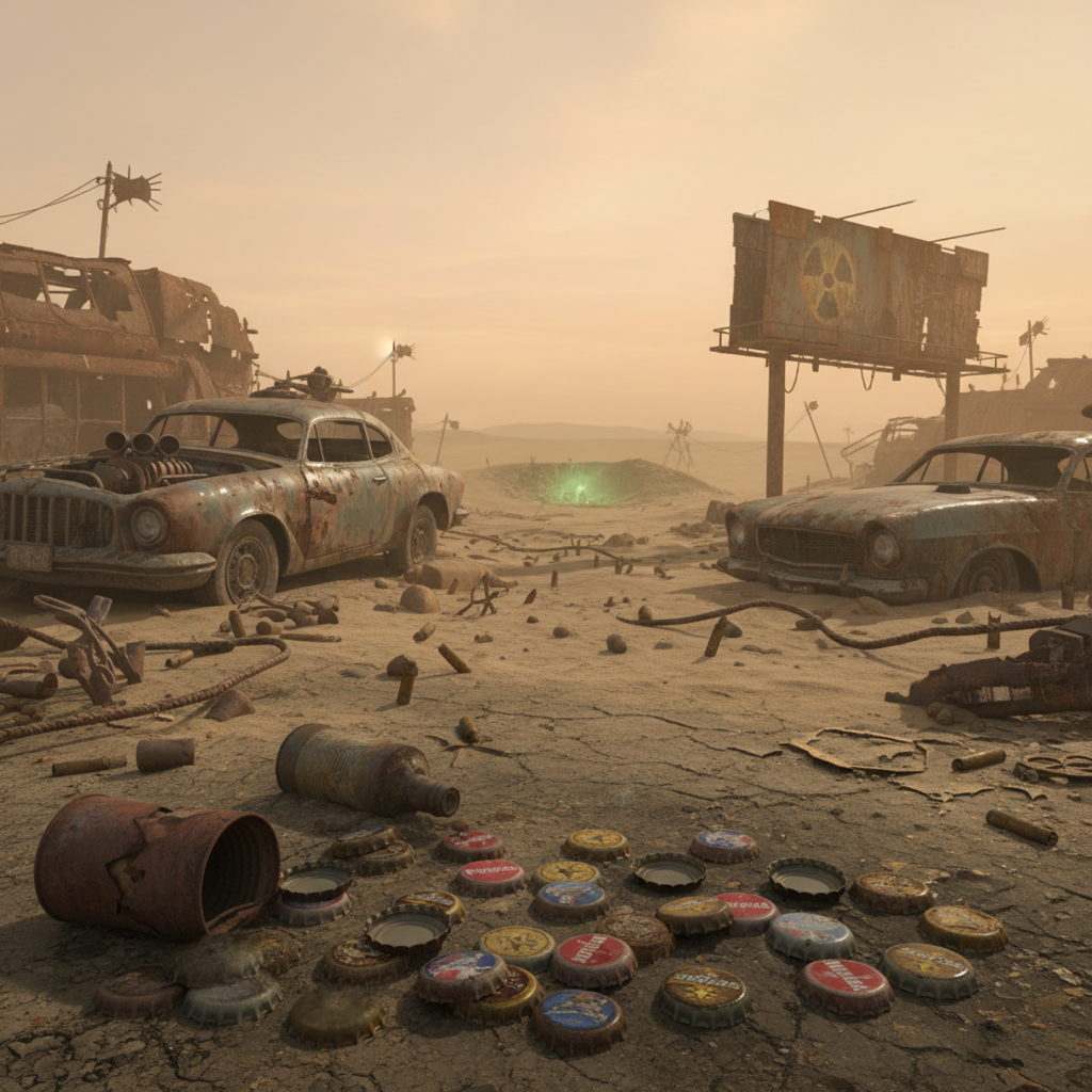 CAPS is inspired by the cultural idea of bottle caps as a symbolic unit of value in retro post-apocalyptic fiction.